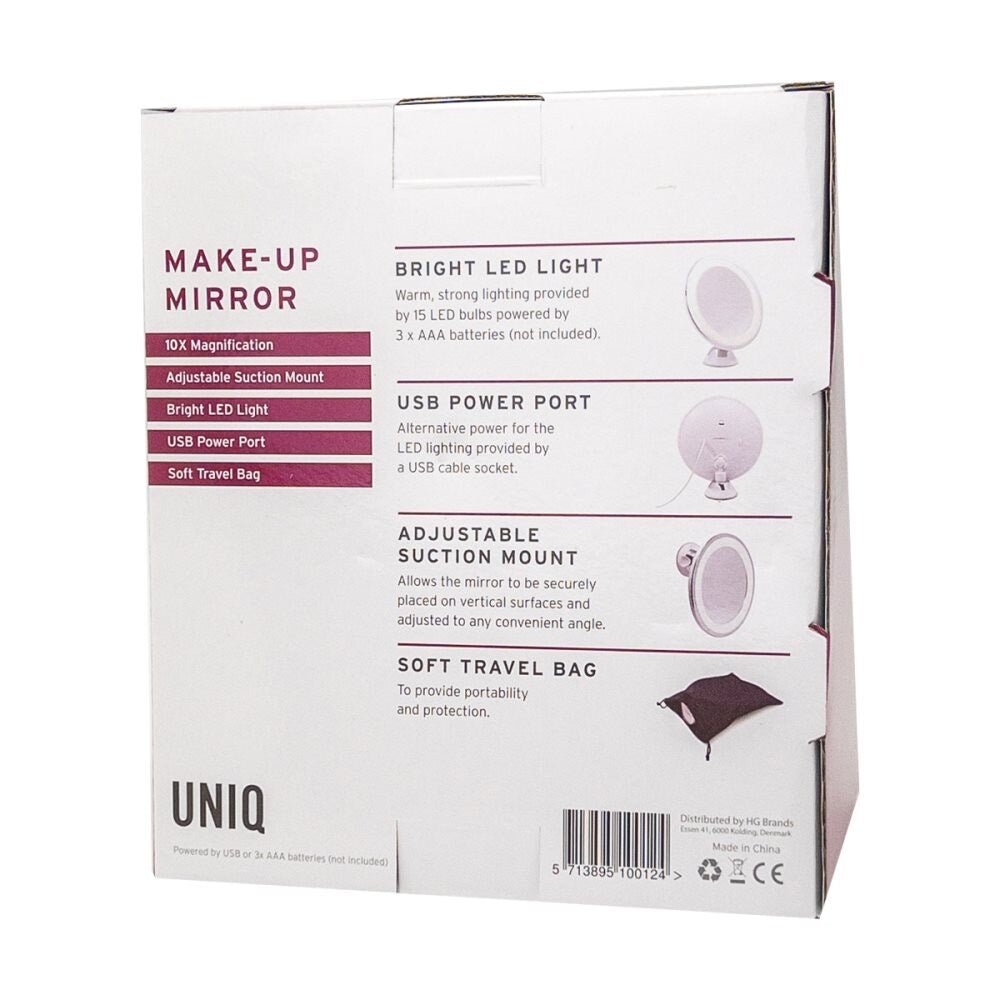 UNIQ Runder Spiegel mit LED-Licht und Saugnapf x10 Vergrößerungsspiegel - Weiß