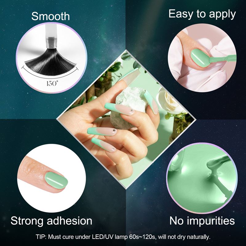 Application and use: Start by sanding the nail surface, then apply a base coat, choose your favourite colour from the pack and finish with a top coat. Remember to cure each coat under a UV/LED lamp for 60 to 120 seconds for optimal durability.