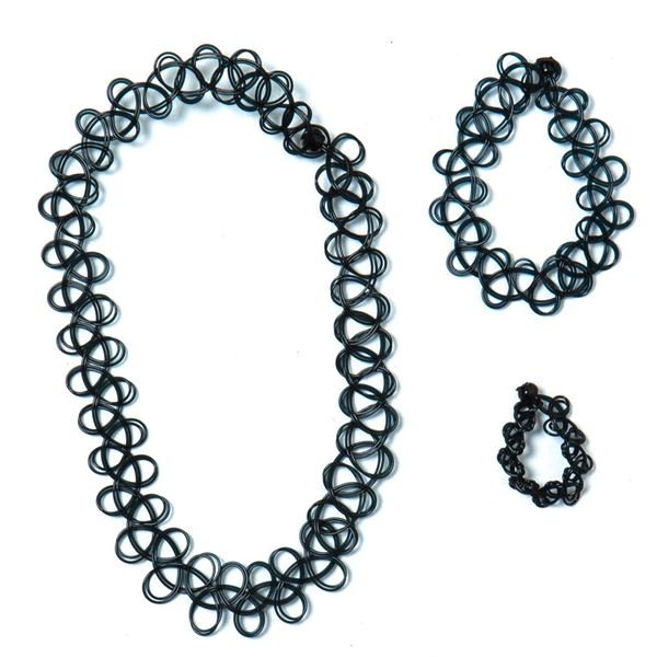 Complete Tattoo Choker set with necklace (also known as choker necklace), bracelet and ring