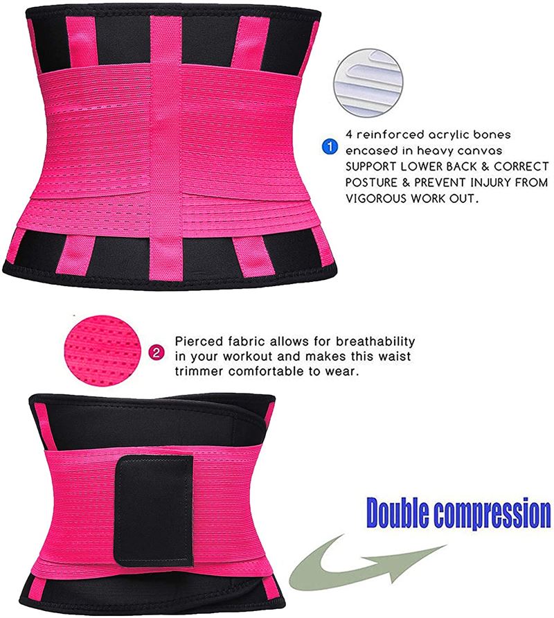 Waist Trainer Trimmer belt made of comfortable and adjustable elasticated fabric. It is flexible and durable. It is highly elastic and provides support on your sides and back, also abdominal compression and lumbar support. The belt is also suitable for training and helps you burn more fat around your abdominal area.