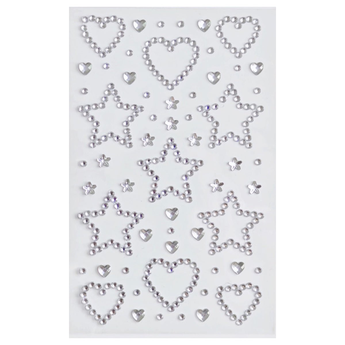 SOHO Hearts & Stars Self Adhesive Facial Rhinestones for face, makeup, nails, body, crafts - Silver