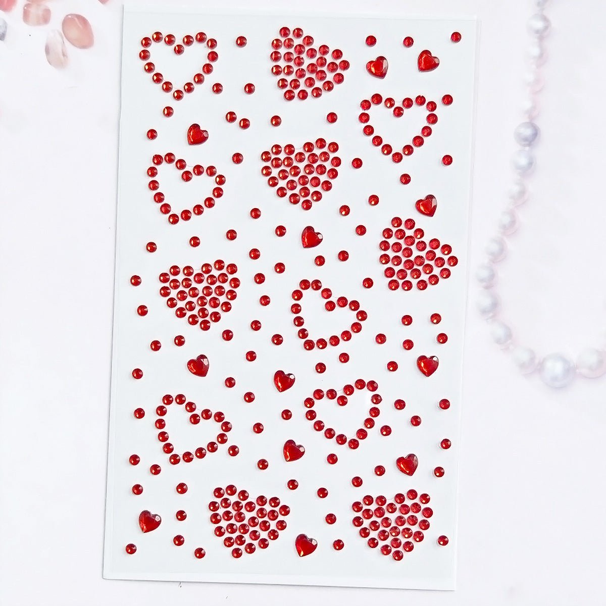 SOHO Hearts – selbstklebende Gesichts-Strasssteine für Gesicht, Make-up, Nägel, Körper, Basteln – Rot